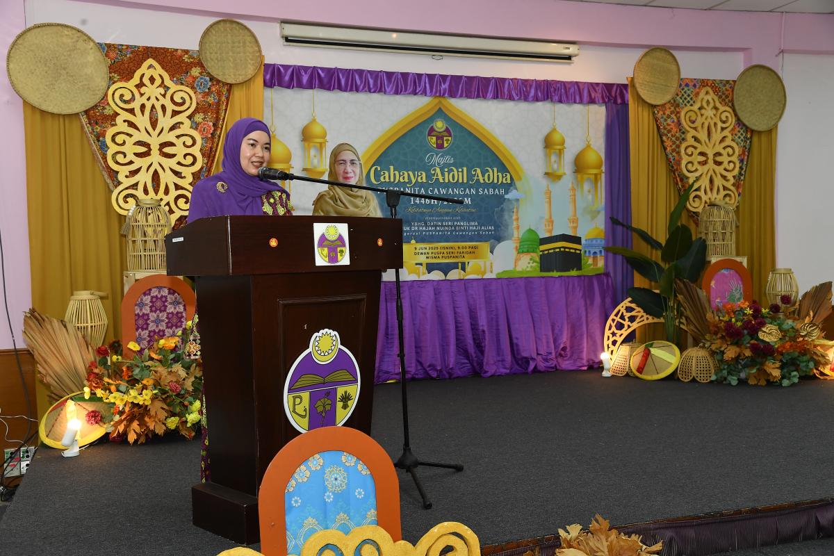 9 Jun 2025- Dua program serentak telah diadakan di Dewan PUSPA Seri Faridah, Wisma PUSPANITA, iaitu Program Berkah Korban dan Majlis Cahaya Aidil Adha. Majlis telah disempurnakan oleh YBhg Datin Seri Panglima Datuk Dr Hajah Nuinda binti Haji Alias, Pengerusi PUSPANITA Cawangan Sabah.