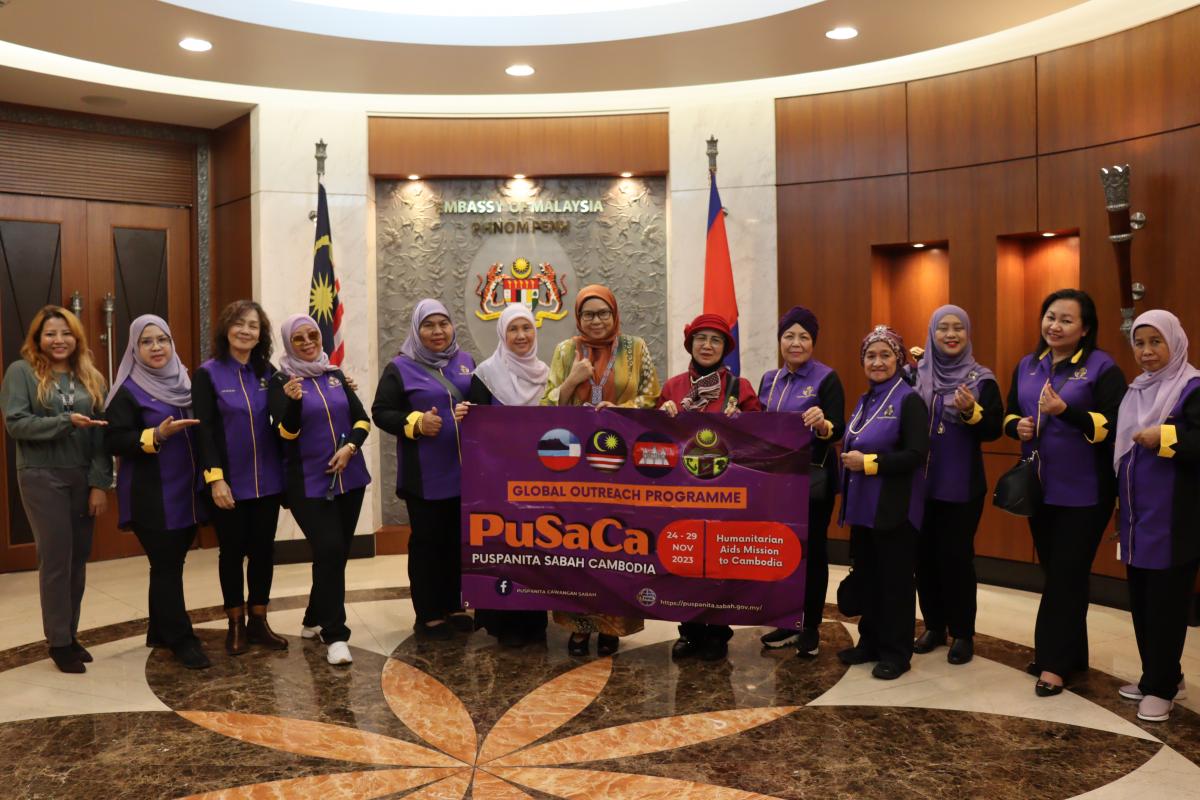 Keberangkatan rombongan PuSaCa ke Cambodia untuk Misi Bantuan Kemanusiaan Ke Cambodia diketuai oleh YBhg Datin Seri Panglima Datuk Dr Hajah Nuinda binti Haji Alias, Pengerusi PUSPANITA Cawangan Sabah dan 12 ahli JKK dan Pentadbiran.
