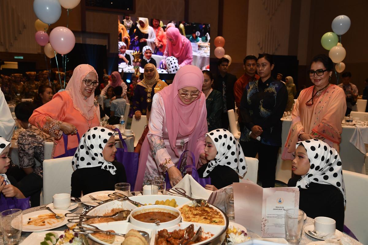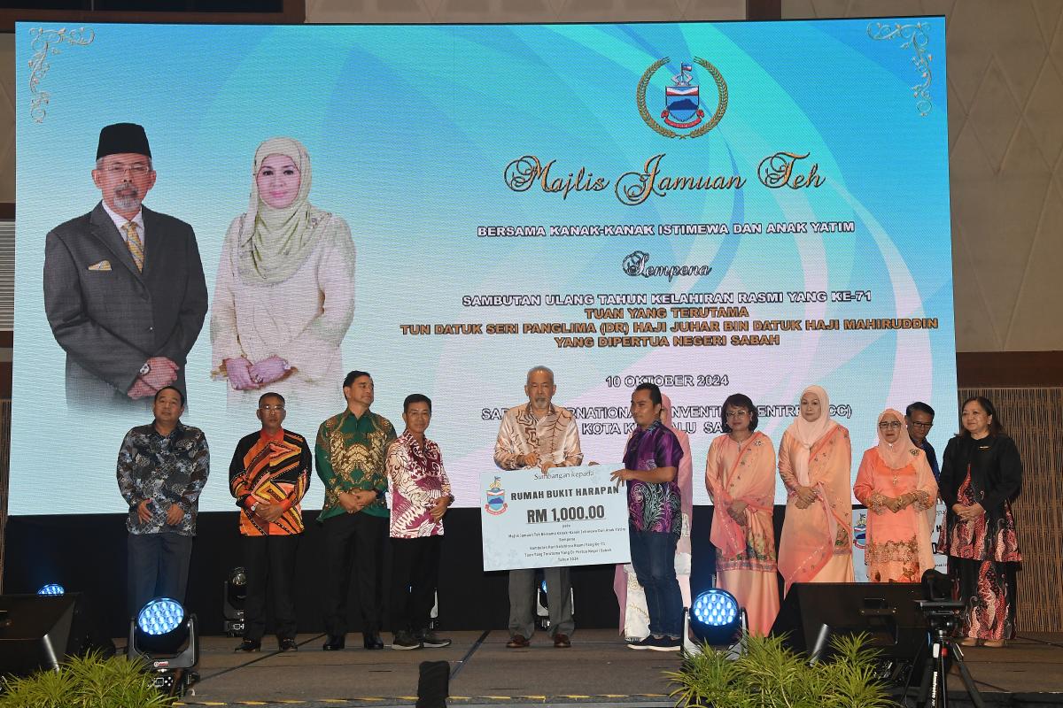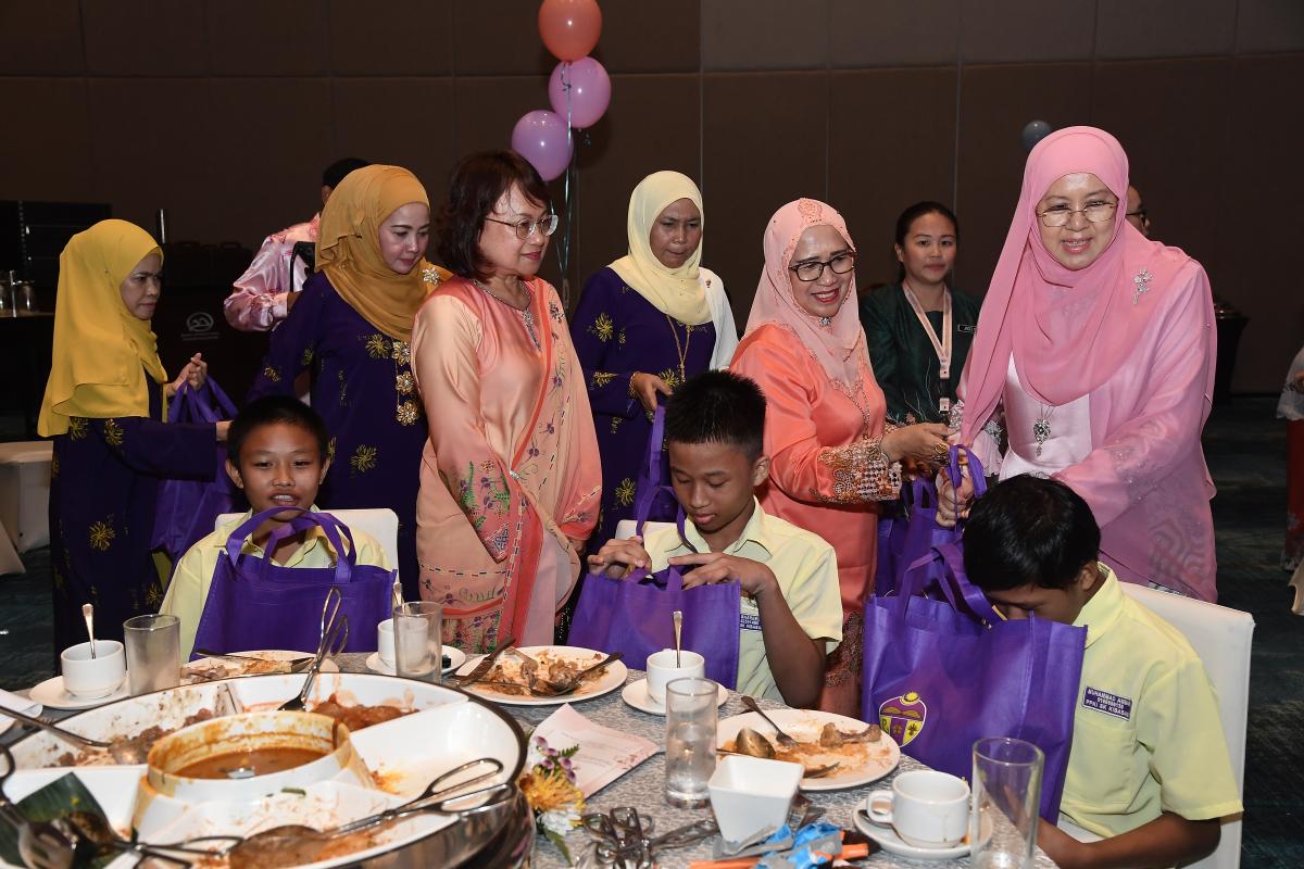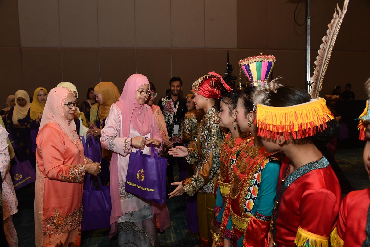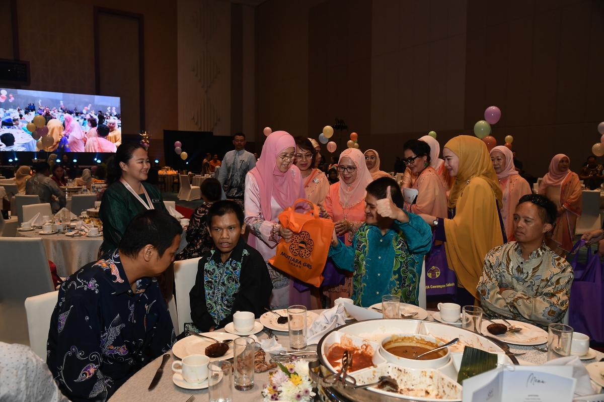 Majlis Jamuan Teh bersama Kanak-Kanak Istimewa dan Anak Yatim Sempena Sambutan Ulang Tahun Kelahiran Rasmi Yang ke-71 Tuan Yang Terutama Tun Datuk Seri Panglima (Dr) Haji Juhar Bin Datuk Haji Mahiruddin, Yang DiPertua Negeri Sabah, di Sabah International Convention Centre, Kota Kinabalu. PUSPANITA Cawangan Sabah menyumbangkan 100 buah bakul rahmah untuk Kanak-kanak Istimewa dan Anak Yatim dan telah disampaikan oleh Yang Amat Berbahagia Toh Puan Datuk Seri Panglima (DR) Hajah Norlidah binti Tan Sri Datuk R,M Jasni diiring oleh YBhg. Datin Seri Panglima Datuk Dr Hajah Nuinda binti Haji Alias, Pengerusi PUSPANITA Cawangan Sabah.