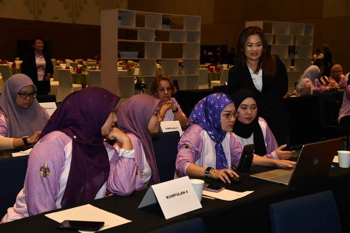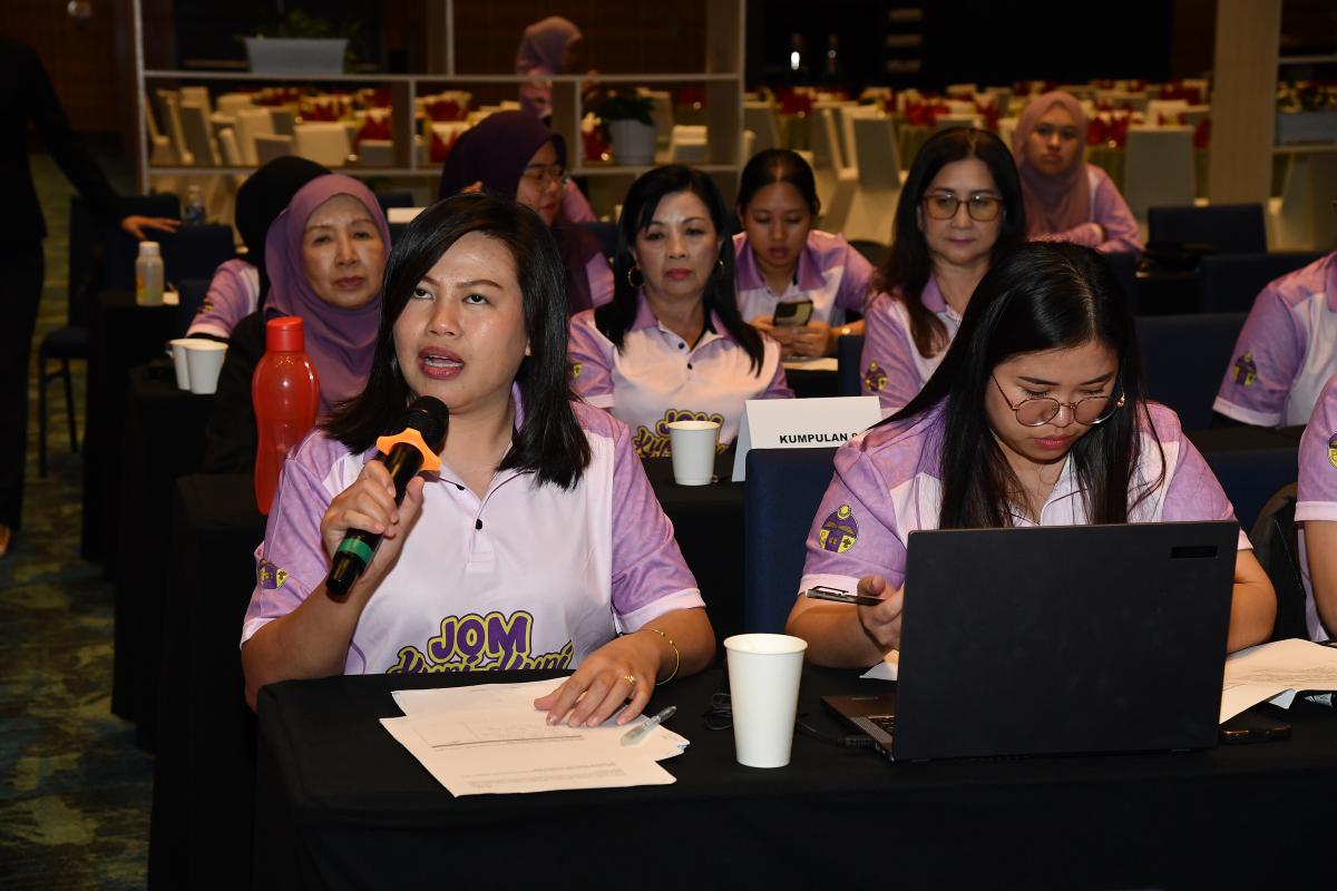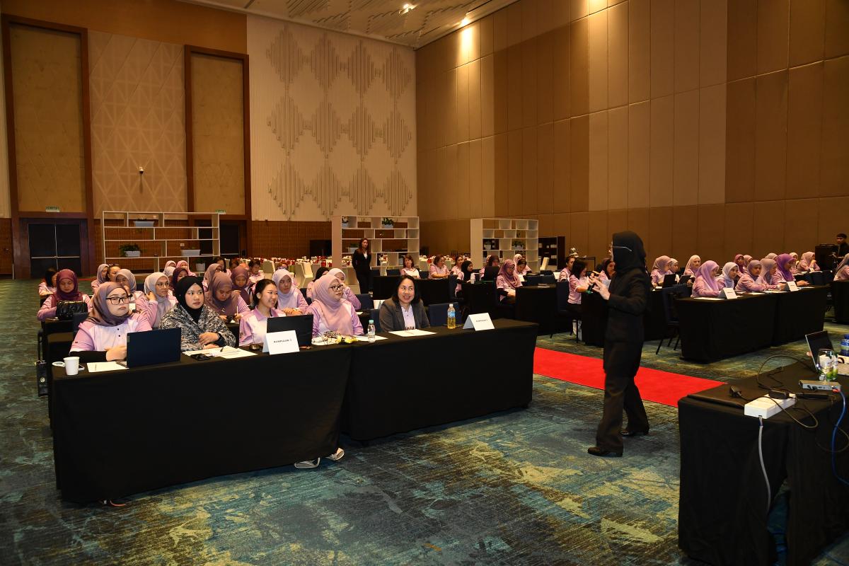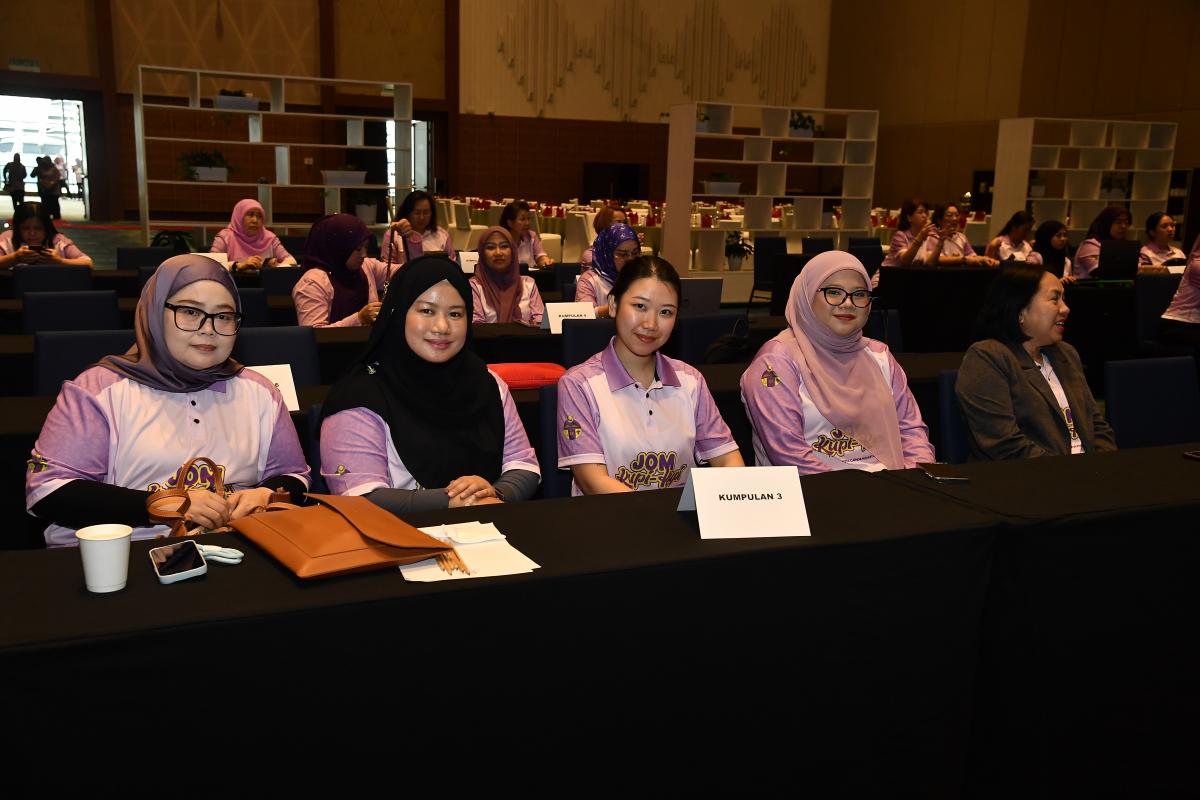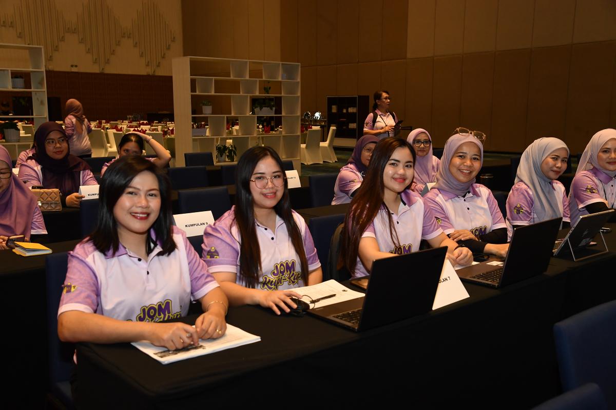 Bertempat di Sipadan Hall III, Level 4, SICC Kota Kinabalu, program yang bermula seawal 8.00 pagi hingga 5.00 petang ini memberi peluang kepada peserta untuk meningkatkan kemahiran penulisan minit mesyuarat dan surat rasmi melalui bengkel interaktif Puan Illies William Nafsiah Liam, lengkap dengan kuiz Kahoot yang menyeronokkan.