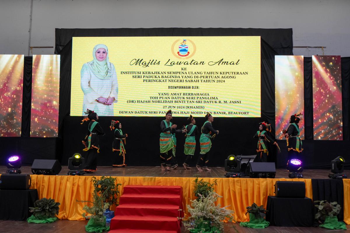 Rombongan PUSPANITA Cawangan Sabah yang diketuai oleh Yang Berbahagia Datin Seri Panglima Datuk Dr Hajah Nuinda binti Haji Alias, Pengerusi PUSPANITA Cawangan Sabah telah menghadiri Majlis Lawatan Amal Ke Institusi kebajikan Sempena Ulangtahun Keputeraan SeriPaduka Baginda Yang Di-Pertuan Agong Peringkat Negeri Sabah tahun 2024 di Dewan DSP Mohd Dun Banir, Beaufort. PUSPANITA Cawangan Sabah turut mengagihkan bakul sumbangan kepada kanak-kanak kurang upaya pada hari tersebut.